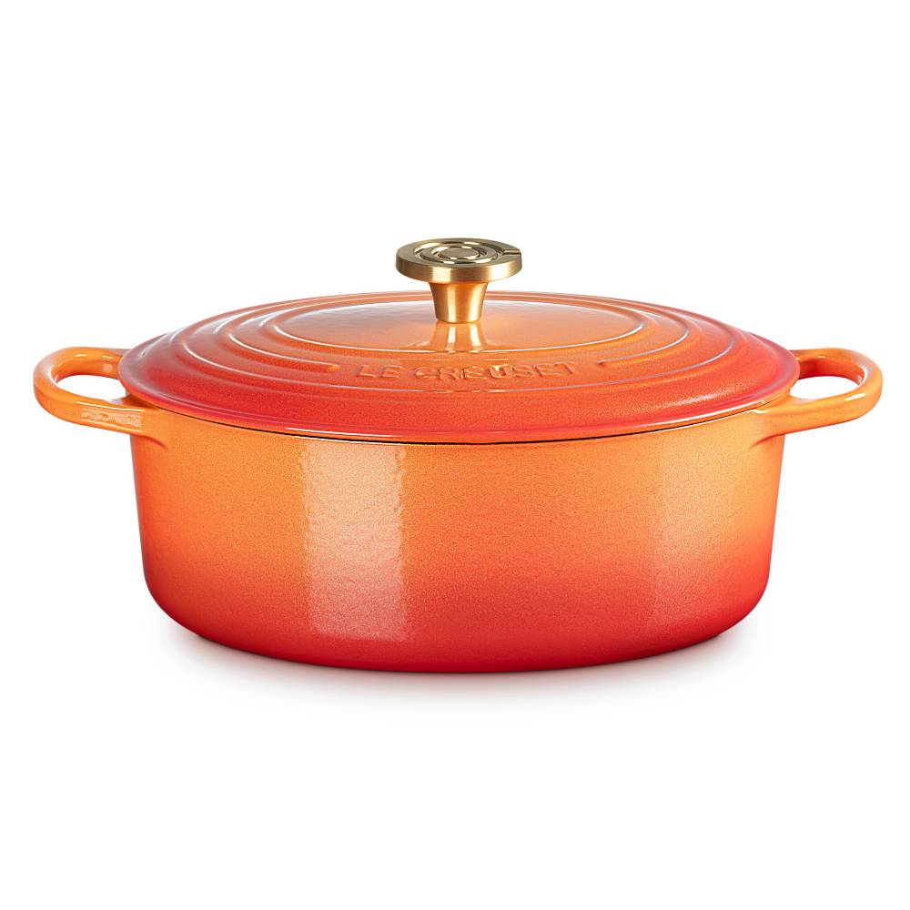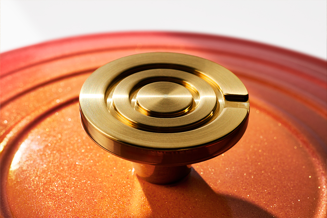 In keeping with its decades-long, industry-leading innovation and forward-thinking design, Le Creuset is excited to unveil its latest advancement in colorful cookware: Flamme Dorée. Translated to “golden flame,” the limited-edition, centenary colorway celebrates Flame, the brand’s iconic original hue, now coated with light-catching minerals and an innovative third layer of enamel coating for a stunning golden shimmer finish. “This new, limited-edition commemorative release joins the brand's ever-expanding collection, which has grown to include over 200 unique hues and nearly 1,000 product shapes since its founding,” said Paul van Zuydam, Owner & Chairman.