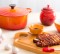 2. 椰菜花放在琺瑯鑄鐵平底煎鍋內,灑上少許鹽和油,入焗爐烤20分鐘,取出備用。