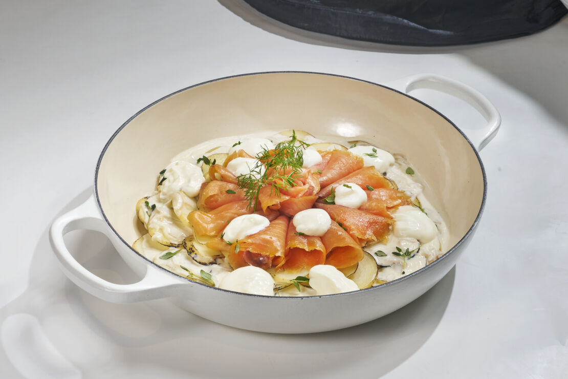 Le Creuset 與廣受讚譽的名廚張倩敏 Charmaine Cheung 合作,一同慶祝本年度的「法國五月美食薈」。Charmaine 分享了一些可以在 1 小時內在家中輕鬆烹調的食譜。盡情享受這道經典的法式菜餚,配以煙三文魚和法式酸忌廉使這傳統的美味更上一層樓。