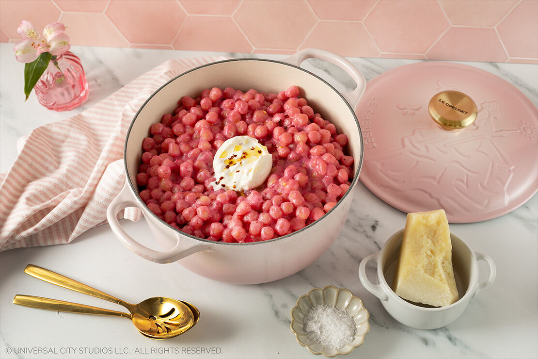 這道夢幻料理靈感來自Glinda 的泡泡與她對粉紅色的熱愛。透過一點烹飪魔法,薯仔粉糰化身為柔軟蓬鬆的小雲朵,披上淡粉色的烤紅菜頭奶油醬。烘烤過的核桃增添細緻的堅果香氣,而羅馬羊奶芝士 (Pecorino Romano) 則帶來恰到好處的鹹香。這是一道為餐桌注入粉紅魔法的佳餚——優雅、迷人、充滿魅力。