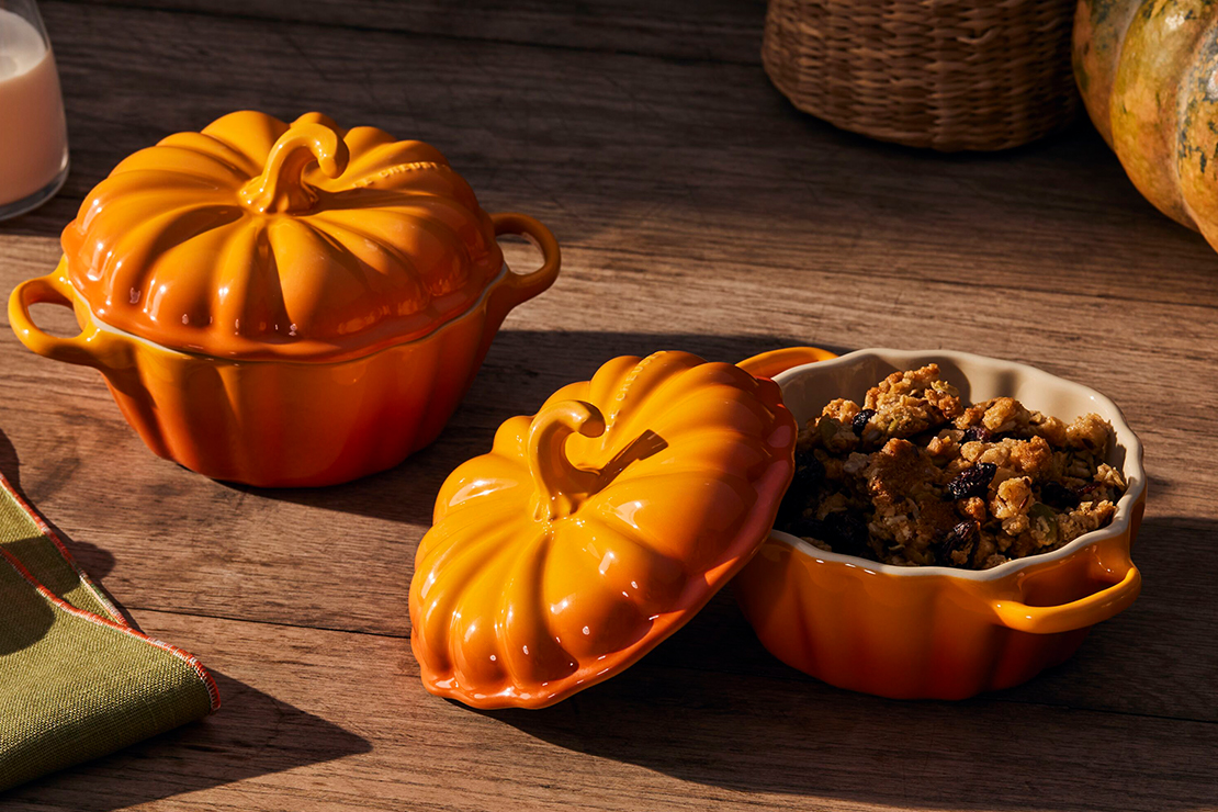 這款經典南瓜造型陶瓷鍋子,是盛載個人份量秋季美食的理想之選。不論用作準備或儲存食材,皆得心應手,同時為廚房添上一抹溫馨的季節氣息。