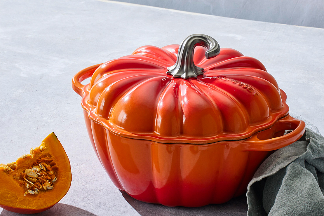 色彩鮮明的南瓜造型鑄鐵鍋,是廚房與餐桌上的季節亮點,為秋日添上一抹溫暖與愉悅。